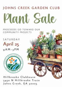 Proceeds from the plant sale help fund the Garden Club’s efforts to educate and beautify Johns Creek through local initiatives and partnerships. It’s also a great chance to connect with members of the club and learn more about how to get involved.