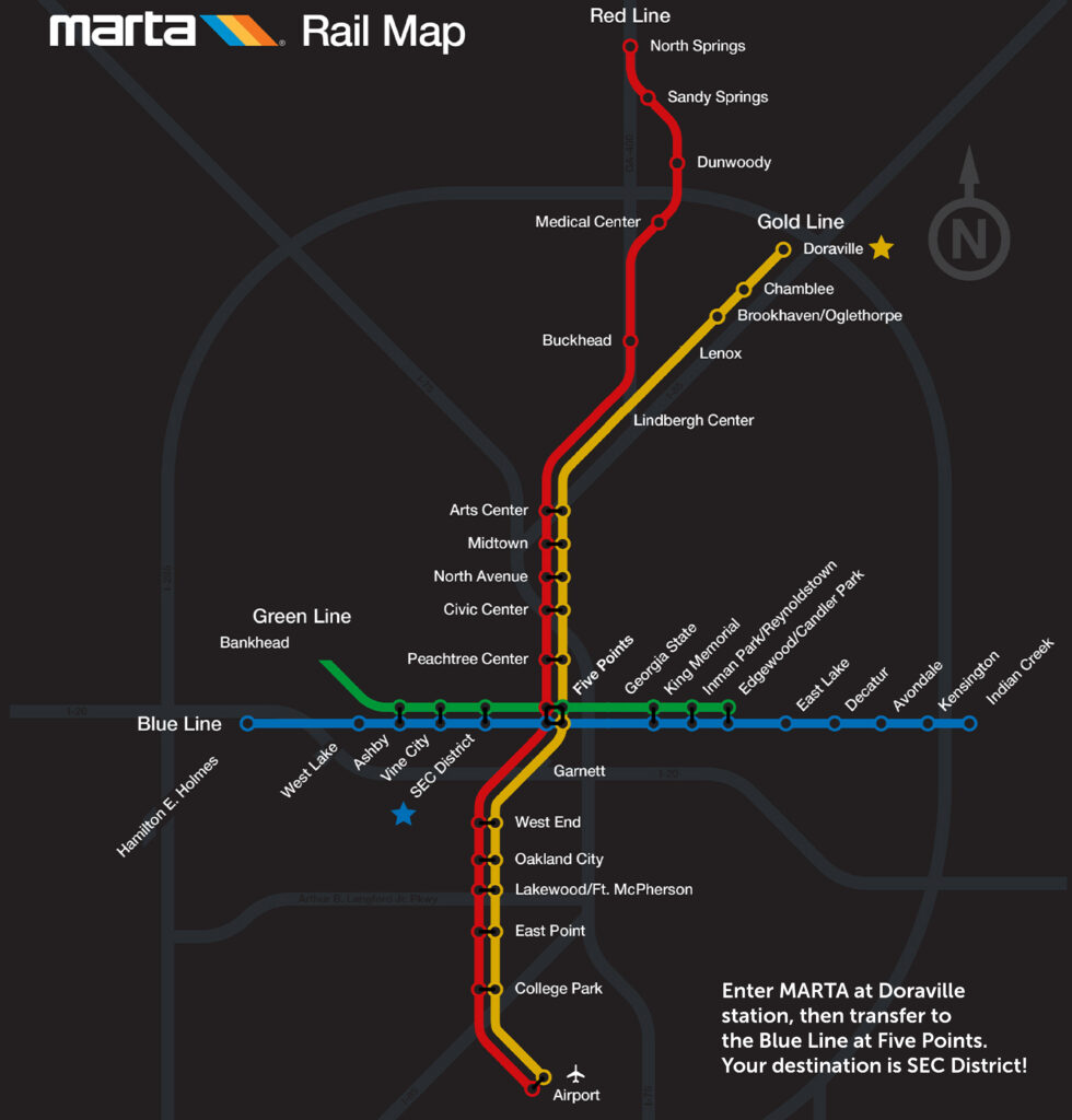 11 Stops (with one line transfer) on MARTA from Doraville Station