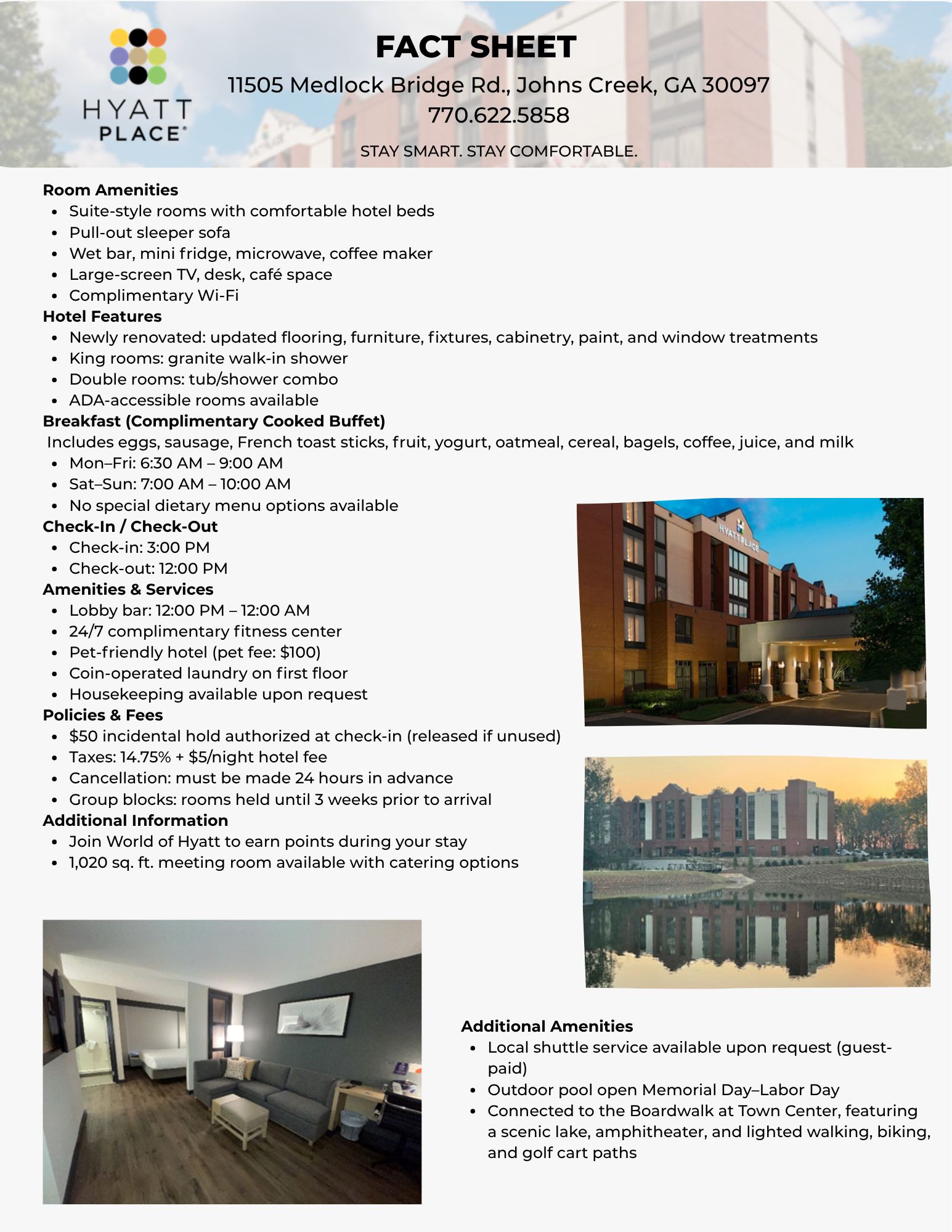 For more info see the Hyatt Place Fact Sheet and Brochure.